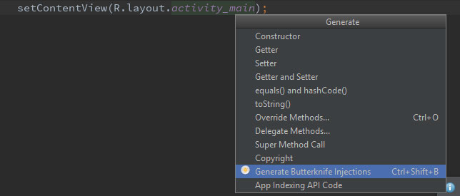 و گزینه generate ButterKnife Injection را انتخاب کنید