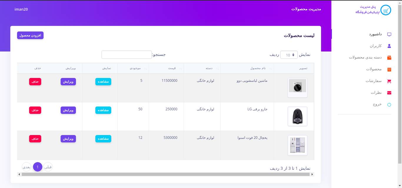 ادمین یا مدیر سیستم می تواند به هر تعداد دسته بندی و محصول منتصب به هر دسته بندی را جهت نمایش در اپلیکیشن ایجاد کند.