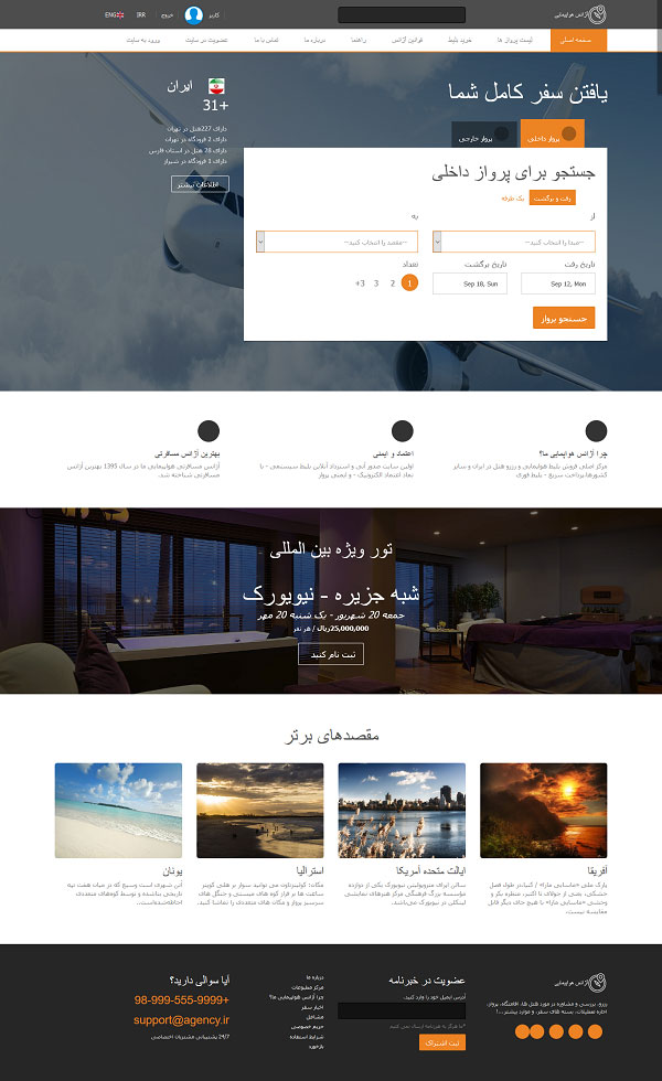 تصویر صفحه اصلی پروژه سایت آژانس هواپیمایی با Asp.Net